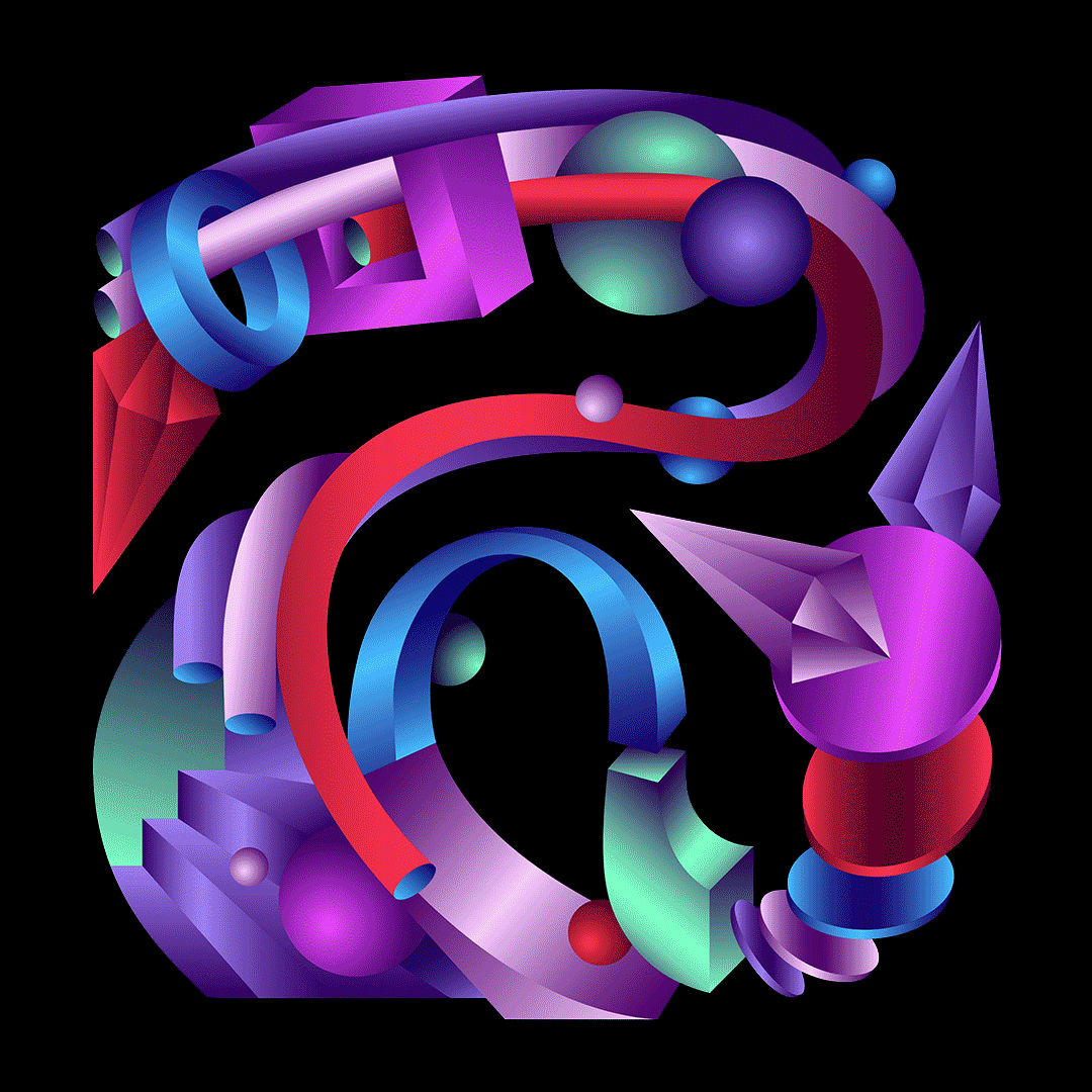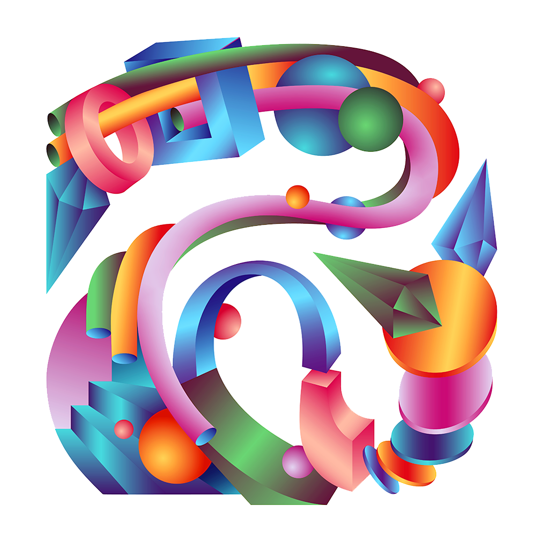 I initially designed three numbers, each with it's own personality. Then I selected the 2 to turn into a digitally rendered art piece. My "Playground 2" was inspired by the idea of form and function, and the underlying shapes that can be used to construct a typography character. Typography is a mixture of serious and functional, and fun and decorative, and I wanted to represent that with my piece.